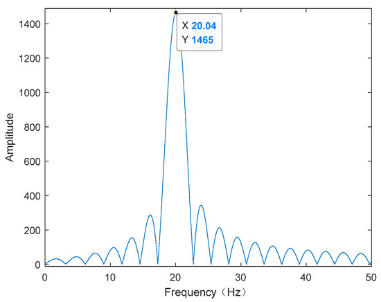 Considering the high-frequency vibration case with the form of (10) and supposing that, and . It can be seen from Table 1 that the synthetic aperture time of the THz-SAR system is 0.4 s. The high-frequency vibration acceleration estimated by LFrFT and its spectrum are shown in Figure 3 and Figure 4, respectively. From the comparison between the estimated vibration acceleration and the true vibration acceleration, it can be found that the estimation error of vibration acceleration is larger at the extreme value points. This is due to the fact that the approximation error is larger when the second order approximation is adopted. At the same time, the estimated values of vibration acceleration after moving the average filter is smoother and closer to the true value of vibration acceleration than that of vibration acceleration before filtering. It is obvious from the spectrum diagram that the frequency of vibration acceleration is 20.04 Hz, which is almost consistent with the actual vibration frequency. Therefore, combining the estimated vibration acceleration and vibration frequency, the estimated vibration displacement can be obtained, as shown in Figure 5. According to the comparison between the estimated value and the true value of displacement, the LFrFT-based high-frequency vibration estimation method can estimate the SFM signal well.