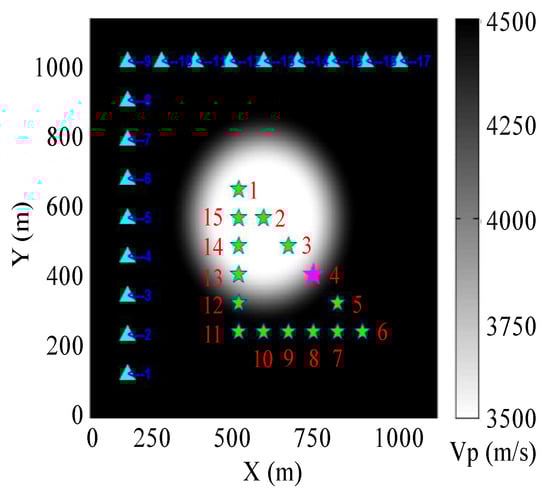 59] is very suitable for real-time MS event location, which is based on the assumption that only the wave propagation paths from receivers to sources need to be considered. However, there are multi-ray path effects as well as waveform focusing and defocusing in mining engineering and, thus, we used the traditional Gaussian beam technique for more stable inversion. In fact, we can use the reciprocity theorem to pre-compute the wavefield library from sensors to each element, which also makes real-time MS event location possible.