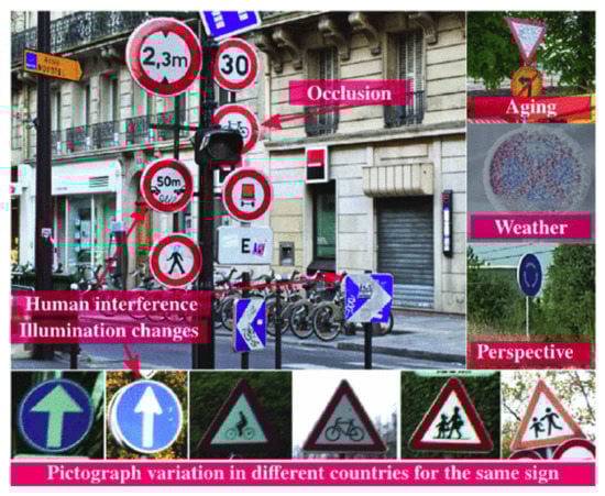 - Mogelmose, A.; Trivedi, M.M.; Moeslund, T.B. Vision-Based Traffic Sign Detection and Analysis for Intelligent Driver Assistance Systems: Perspectives and Survey. IEEE Trans. Intell. Transp. Syst. 2012, 13, 1484–1497. [Google Scholar] [CrossRef]