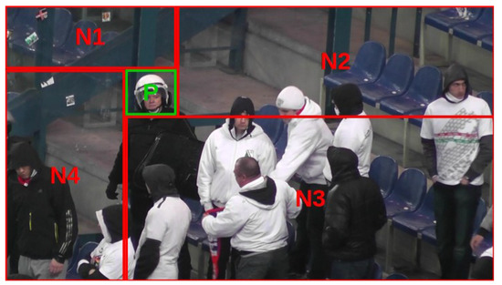 Negative samples that are used in detector training are extracted from the same sequence images that positive samples originated from. For each training image, one fragment is used to extract a positive sample, while the remaining part of the image is divided into at most four sources of negative samples, as given in Figure 3. Thus, an assumption is made that these remaining parts of the training sequence images do not contain positive samples. This assumption is not always valid, but may be strengthened by asking a user to mark all positive examples in the training sequence.