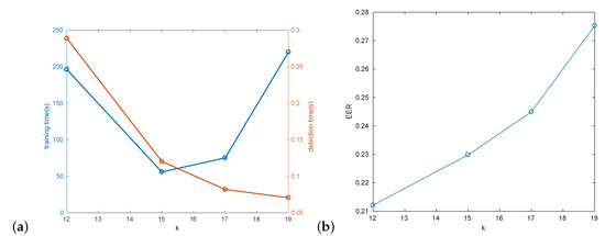 The final addition to the testing scenario was the utilization of short sequences. For every short time window, from all the results, only the one with the best response was taken as a final detection and passed to further processing. Accumulated results for the windows of length 5 is presented in Figure 18b. EER for them are, respectively: 27.4%, 15.1%, and 14.3%. It was observed that the longer the window the smaller is the quality gain.