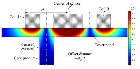 Schematic diagram while the offset distance between the centers of sensor of core was dos/2.