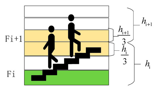 If , the user is judged to stay on the floor. Otherwise, once the floor switching motion is detected, which will be described in the next section, the user is judged to be situated in the intermediate area between adjacent floors and the vertical coordinates are then estimated using Equation (7).
