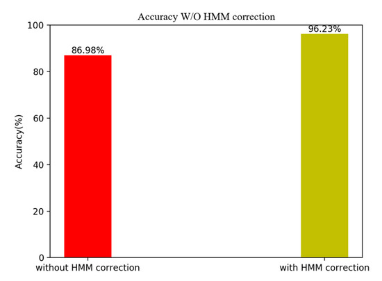 Accuracy without and with HMM correction.