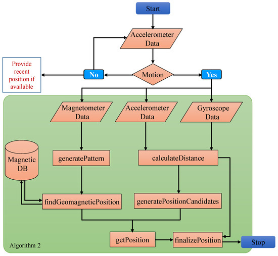 | Algorithm 2 User Positioning Using Geomagnetic and Acceleration Data [14]. | |
