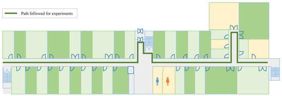 Path followed to perform indoor localization. The user walks along the same path with arbitrary direction.