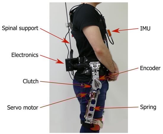 - Sanchez-Villamañan, M.D.C.; Gonzalez-Vargas, J.; Torricelli, D.; Moreno, J.C.; Pons, J.L. Compliant lower limb exoskeletons: A comprehensive review on mechanical design principles. J. Neuroeng. Rehabil. 2019, 16, 1–16. [Google Scholar] [CrossRef]