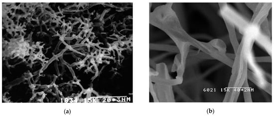 The micromorphology of the mycelium film was studied by means of electron scanning microscopy CamScan-S2. The test material was treated with 2.5% glutaraldehyde. Then, the mycelium was washed with phosphate buffer and dehydrated by passing through ethanol solutions with increasing concentration: 30%, 50%, 70%, and 96%. Ethanol was removed and the material was treated two times with acetone. Upon completion of drying, palladium and gold were sprayed onto the material.