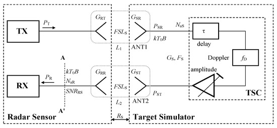 Block diagram with basic automotive radar (AR) sensor–target simulator (TS) relations.