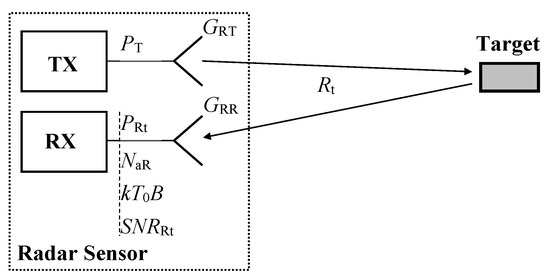 As with any radio system, the operation of the TS is influenced by both additive RF noise and phase noise. This section considers the former, but firstly, the signal-to-noise ratio (SNRRt) corresponding to a real target must also be evaluated, see Figure 3. Consequently, it must be determined how the TS influences the AR sensor noise behavior. The SNRRt is related to the input of the AR sensor receiver and can be expressed using the formula