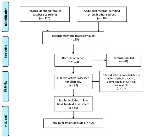 - Moher, D.; Liberati, A.; Tetzlaff, J.; Altman, D.G.; The PRISMA Group. Preferred Reporting Items for Systematic Reviews and Meta-Analyses: The PRISMA Statement. PLoS Med. 2009, 6, e1000097. [Google Scholar] [CrossRef] [PubMed]