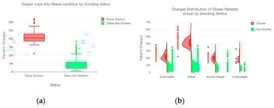 (a) Obese condition by smoking status; (b) distribution of obese patient group by smoking status.