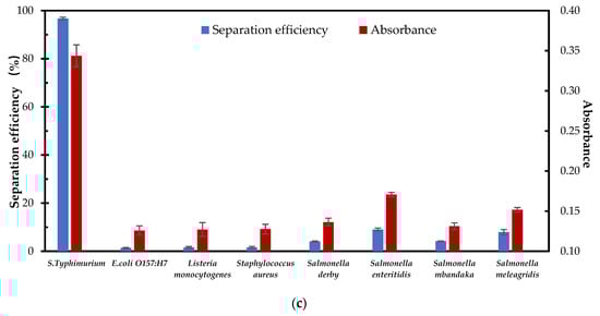 - Shim, W.-B.; Song, J.-E.; Mun, H.; Chung, D.-H.; Kim, M.-G. Rapid colorimetric detection of Salmonella typhimuriumusing a selective filtration technique combined with antibody–magnetic nanoparticle nanocomposites. Anal. Bioanal. Chem. 2013, 406, 859–866. [Google Scholar] [CrossRef] [PubMed]