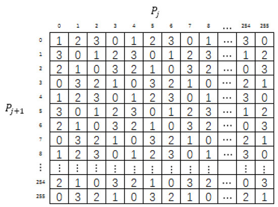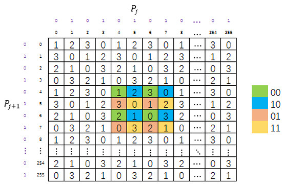 As shown in Figure 4, the MSM is a matrix that contains 4096 4 × 4 submatrices, and each submatrix contains 4 basic structures. Each basic structure is filled with numbers from 0 to 3. In addition, the digits from 0 to 3 must occur just once in each row and each column of the submatrix.
