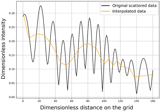 The corresponding process was also executed while using the built-in subroutines in Matlab. Figure 3 shows this interpolation step in a sample case.