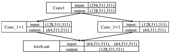 This paper utilizes two stacked hourglass networks for feature extraction, and the resolution of the output feature map is 64 × 64. The hourglass network is composed of two 3 × 3 convolutional layers and a skip connected residual block. However, the traditional hourglass network has too many parameters and costs lots of computation resources. Combining with the network of SqueezeNet [], a Fire Module is used in the hourglass network to reduce the processing amount of pixels, as shown in Figure 7. There are two main ways to reduce network complexity: (1) 1 × 1 convolution kernel is used to process the image and change the dimension of the image to reduce the network parameters. (2) An extended layer consists of a 1 × 1 and 3 × 3 convolution kernel is employed to provide the results.
