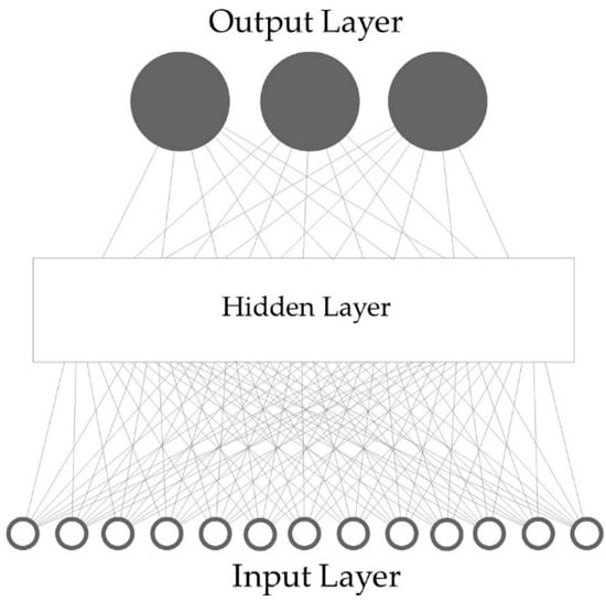 In training the neural network, the system optimizes the ideal weight values until the loss function is minimized under the influence of a learning algorithm [,]. The Bayesian Regularization algorithm was applied, introducing a non-linearity by using a tan-sigmoid function to reduce the possibility of an over-fit since it uses a probabilistic nature for the network weights [].