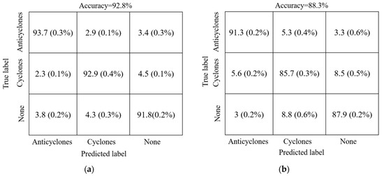 The eddy detection results of three categories. (a) DEDNet; (b) FCN-based network.