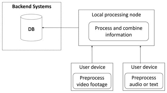 The second use case relates to adding supplementary information to existing PoIs. Once the temporal and geographical dimensions of a PoI are established, LBA users can see them on a map. Upon traveling to these PoIs, users have the option to add data about the PoI and submit it onward for processing and validation. In Figure 5, we visualize two users’ devices, one sending video data and the other sending audio or text files. Audio and video files can be processed locally by first converting them to file formats that take little space and then by extracting metadata from them using machine learning or other types of techniques. This pre-processed data can then be sent over to the local node for further processing before finally being added to the global database. By utilizing edge computing in this manner, the system load can be split among crowdsourcers, which also saves bandwidth as less data needs to be sent over the internet.