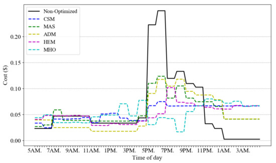 Based on Figure 8, our model has the lowest cost in all the scenarios considered. The appliances’ usage priority cause that elastic loads, with the high consumptions, are optimized first and then the prioritized deferrable loads optimized in next level. Moreover, considering essential loads usage as a lower bound in optimization model helps to reduce the total cost either.
