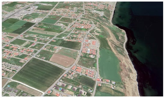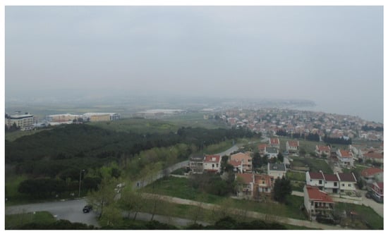 For the measurements with low user activity, data were collected at Silivri where it is located in the rural parts of Istanbul. The measurements were made during the same time as the measurements taken at Taksim. The area is not as crowded as the city center. It has slightly wavy hills with a height of about 60 m at most. Figure 9 shows a picture of the environment for the Silivri area that has been taken from the corresponding BS. Also, a satellite capture picture is given in Figure 10.