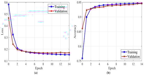 (a) Loss and (b) accuracy graphs for 2D-LSTM.