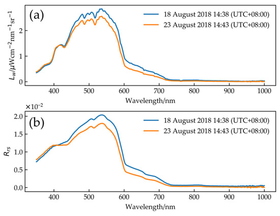 (a) Water-leaving radiance; (b) remote sensing reflectance.