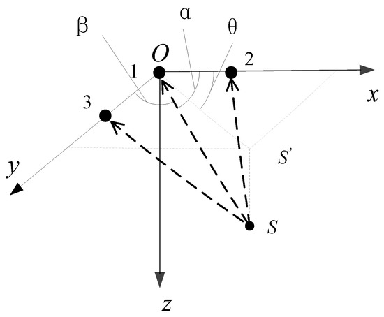 We performed underwater positioning, as shown in Figure 4. In the specific coordinate system, we need to determine the coordinate (x, y, z) of target S. We deployed two orthogonal linear arrays on the x-axis and y-axis, respectively, and the array center is the origin of the coordinates.