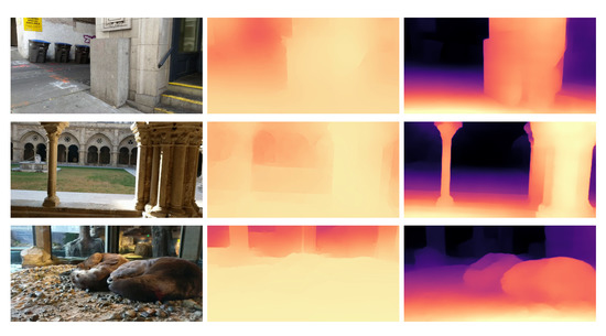 - Godard, C.; Mac Aodha, O.; Brostow, G.J. Unsupervised Monocular Depth Estimation with Left-Right Consistency. In Proceedings of the IEEE Conference on Computer Vision and Pattern Recognition (CVPR), Honolulu, HI, USA, 21–26 July 2017. [Google Scholar]