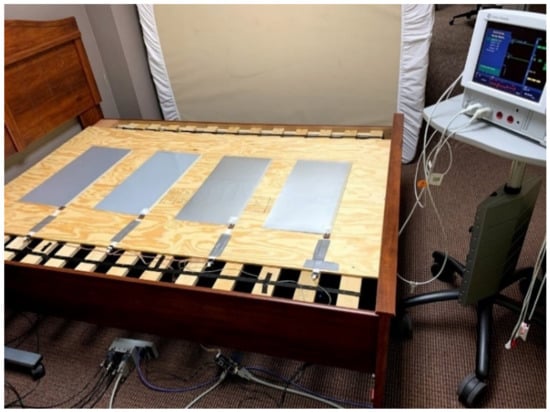- Carlson, C.; Suliman, A.; Prakash, P.; Thompson, D.E.; Wang, S.; Natarajan, B.; Warren, S. Bed-based instrumentation for unobtrusive sleep quality assessment in severely disabled autistic children. In Proceedings of the 2016 Annual International Conference of the IEEE Engineering in Medicine and Biology Society, Orlando, FL, USA, 16–20 August 2016; pp. 4909–4912. [Google Scholar] [CrossRef]