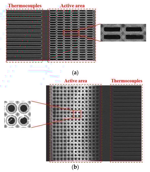 In this article, we will systematically discuss the research results of these thermopile sensors, and study the structural optimization of several SHAs through numerical methods. The investigated SHA patterns are three types of hole shapes including rectangular, square, and circular, referred to as SRHA, SSHA, and SCHA, and two kinds of hole arrays with SA and HA. The top-view sketches of (a) three investigated structure patterns and (b) the hole arrangements described by use of circular holes as an example are shown in