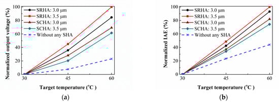 Table 9. Here the relative IAE defined as the IAE of the thermopile with the SHA at the target temperature of 60 °C is relative to one without any SHA in its active area to appear the influence of the CMOS compatible thermopiles with those SHAs and is written as