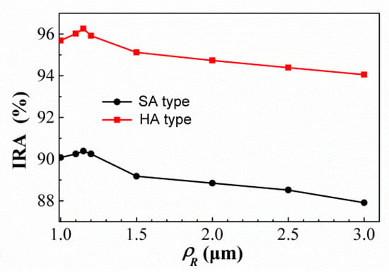 ρR = 2.5 μm. After simulation, their IRAs and geometric parameters of the best cases for the six ESCSs are obtained and listed in