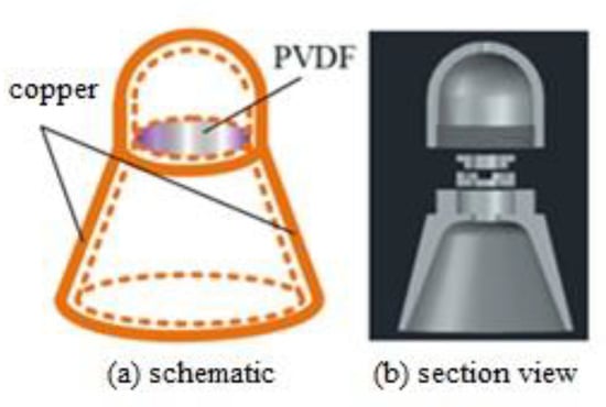 The frequency of fetal heart sound is 10–400 Hz, and this includes components with frequencies lower than 20 Hz. The low-frequency limitation of the traditional microphone is 20 Hz, so the integrity of the fetal heart sound cannot be guaranteed in this way. Polyvinylidene fluoride (PVDF) piezoelectric film can convert sound into electrical signals. The material has a wide frequency response, i.e., 0–400 MHz, and can gather more low-frequency information. The impedance of PVDF is close to that of the human body and the signal reflection is small when they are contacted. Furthermore, the material is thin, light, soft, chemically stable, and it can be cut arbitrarily. Fabrication is simple and the cost is low.