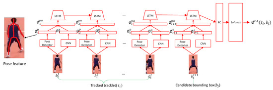 Specifically, we concatenate the tracklet and detection to construct a new detection sequence, extract the pose-based appearance features that are fed into the LSTM network to model the long-term evolutions. Then we use Softmax followed by the LSTM for a binary classification problem, estimating how confident the evolutions come from the same athlete.