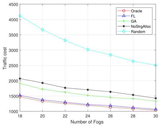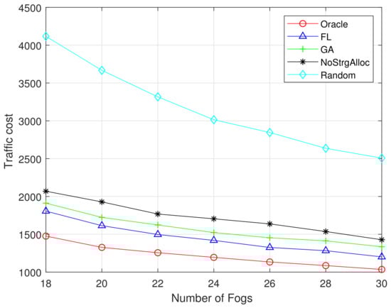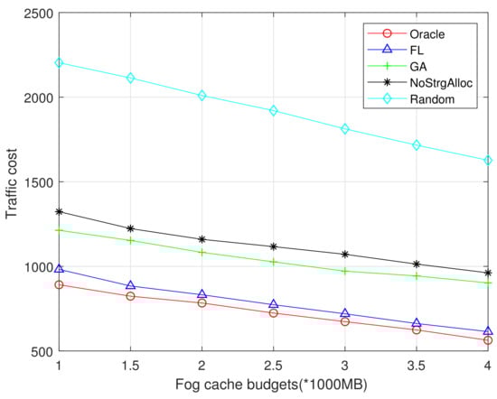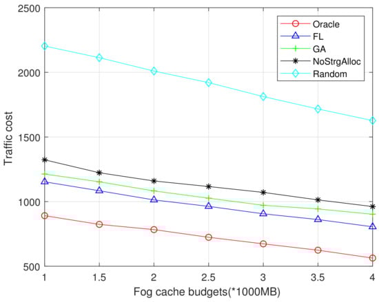 - No storage allocation (NoStrgAlloc): The content popularity follows the Zipf distribution and does not consider the storage resource allocation of the fog computing server.
