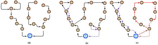 The itinerary planning is divided into static, dynamic, and hybrid planning [65]. The static itineraries are computed before MCs’ migration, while dynamic itineraries work at every hop on the spot. In the hybrid ones, the sink or gateway decides the visiting SNs. The sequence of visits is determined by MC dynamically. Static itineraries work well than dynamic ones due to the pre-determined itineraries. They are more appropriate in monitoring, for instance, collecting data in physical quantities. They are further classified into Single Itinerary Planning (SIP) and Multiple Itinerary Planning (MIP). In the former, there is only one MC. In contrast, the latter has multiple MCs (as in our case) that traverse in parallel but for different clusters of IoT [65]. SIP has several setbacks: it is not scalable, and its performance degrades with the increase in the number of SNs. The large size of a network is the main hindrance in SIP because of traversal delay and energy depletion associated with data aggregation. In contrast, MIP elevates these issues. However, its design and execution are complex and challenging [66]. Figure 4 illustrates the phenomenon of centralized, SIP, and MIP data aggregation. The black arrows show a multi-hop data transition from different nodes to the sink. In contrast, blue and red arrows show MC itineraries.