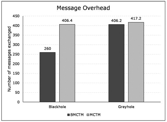 Hence, the results, discussed in Section 6.2 uphold the reduced message overhead, more residual energy, scalability of the proposed model in terms of throughput, and an optimized lifetime of the underlying network using BMCTM under greyhole and blackhole attacks with the same setup environment, parameters, and energy model.