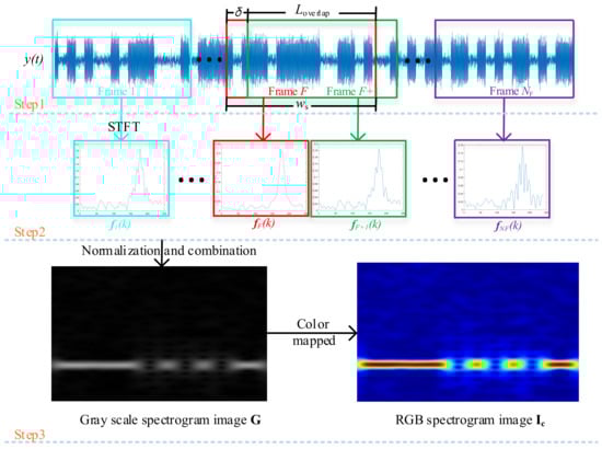where is the RGB spectrogram image and is the non-linear quantization function []. It is worth noting that, to facilitate the observation and analysis of the RGB spectrogram image, we deploy the color mapping in this paper. This step can be omitted in practical applications.