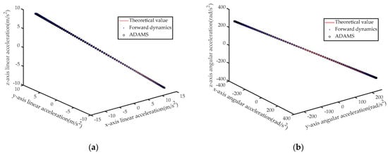 (a) Calculated and theoretical values of linear acceleration; (b) Calculated and theoretical values of angular acceleration.