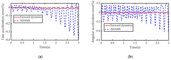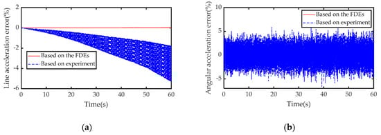 Numerical simulation error: (a) linear acceleration measurement error; (b) angular acceleration measurement error.