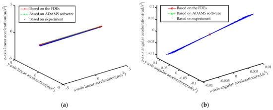 Comparison of the calculation results of the IDEs based on the results of the three methods. (a) Linear acceleration; (b) Angular acceleration.