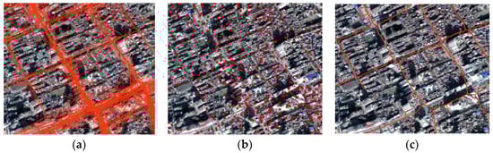 Extraction results of existing methods for old downtown areas. (a) The method of Cao; (b) the method of Edelkamp; (c) the method of Davies.