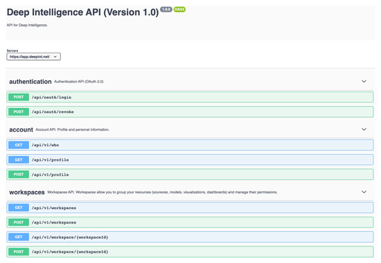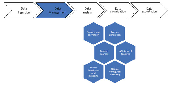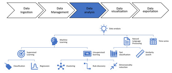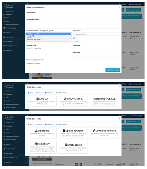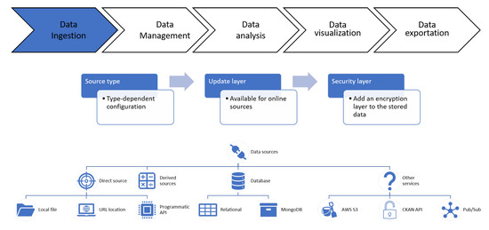 Deepint.net is a platform created for managing and interpreting data in an efficient and simple way. It has been structured in five different functional layers as shown in Figure 4. Figure 5 presents the elements of the data ingestion layer of Deepint.net.