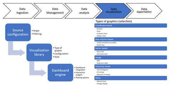Furthermore, additional features enable users to exploit all the results through dynamic, reusable dashboards that can be shared and used by other SC tools. Moreover, the results can be exported in different formats for simple integration, for example, in a report. Figure 4 shows elements and tools that can be used along the process of data management, from data intake, to the creation of scorecards or data exploitation.