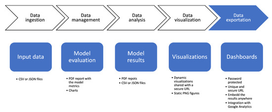Figure 10 shows some screenshots of data ingestion. In short, the platform covers all the usual flow of data analysis from the intake of information to the exploitation of the results. However, unlike other existing tools, its user does not need to have any knowledge of programming or data analysis. Figure 11 shows a screenshot of the process of creating a supervised model for data analysis.