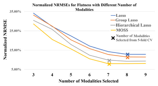 Normalized NRMSEs for Flatness with Different Number of Modalities.