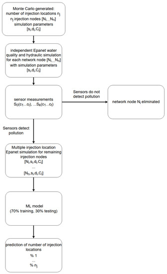 Flowchart of Machine Learning algorithm for prediction of number of contamination sources.
