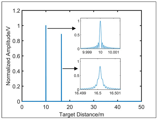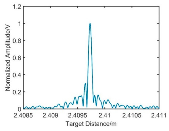 It can be seen from Equation (2) that the frequency of the resampling signal is fixed, and the effect of laser modulation nonlinearity on ranging can be eliminated. Then, the target distance can be obtained.