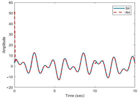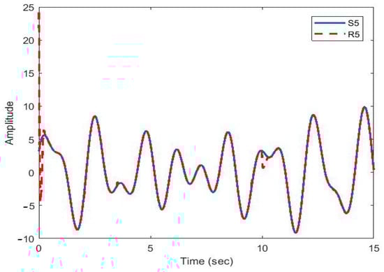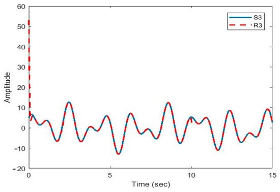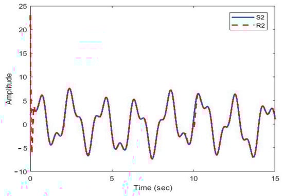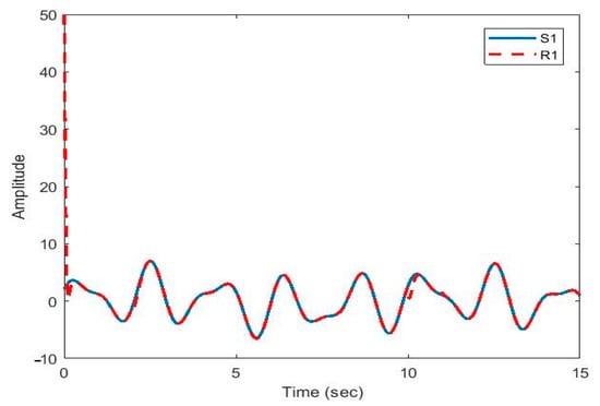 Figure 9 shows the recovered signal (R1) followed the original signal (S1) very well. Due to sudden changes in delays and parameters, there was a pick at 10 s, which was dealt with, and after that the recovered signal faithfully followed the original signal again.